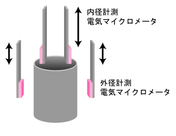製作事例円筒形状ワークの各位置での内外径測定、及び径差(テーパ)測定
