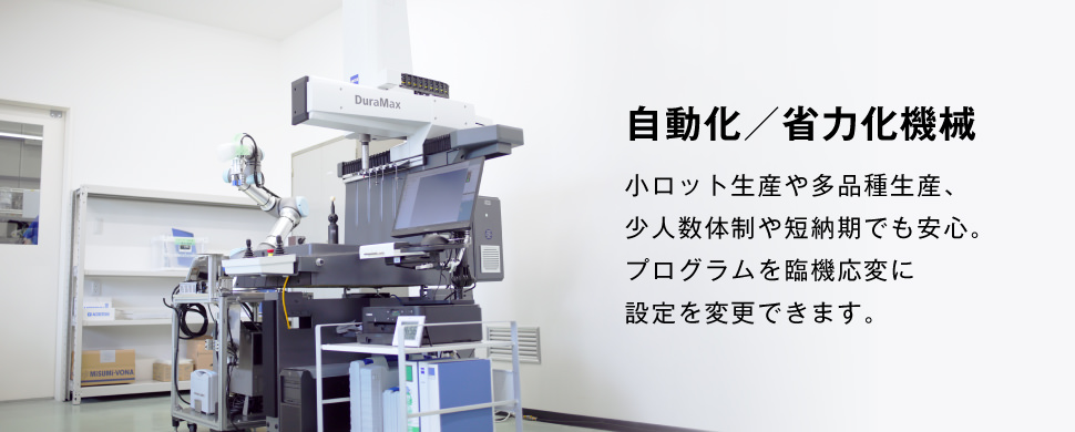 小ロット生産や多品種生産の際に本領を発揮する協働ロボットのプログラムを設計します。世界シェアNo.1のユニバーサルロボット社製の協働ロボットなら中小企業様も導入しやすく、プログラム変更も柔軟にできるため、オススメしています。導入後のマシンメンテナンスもお引き受けします。
